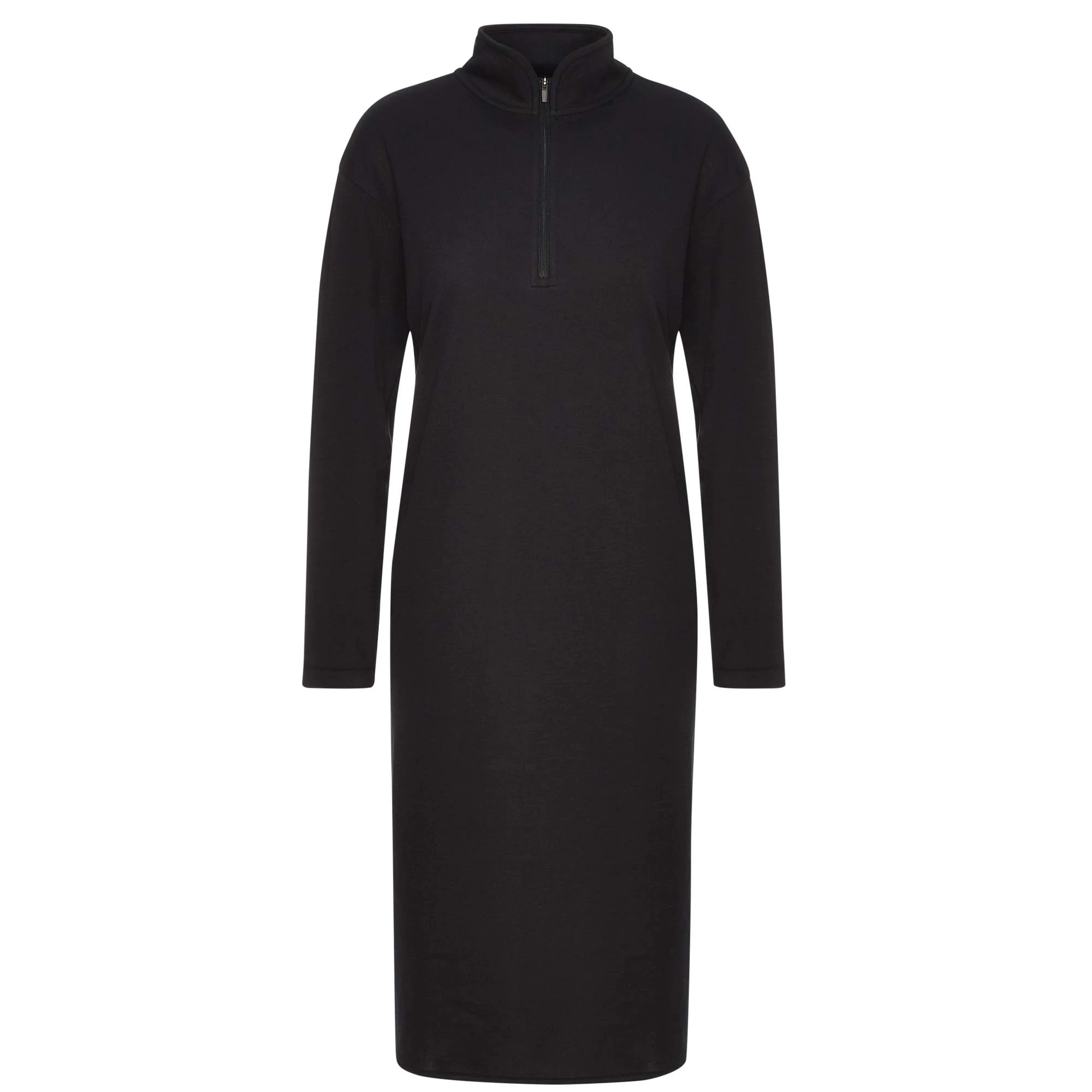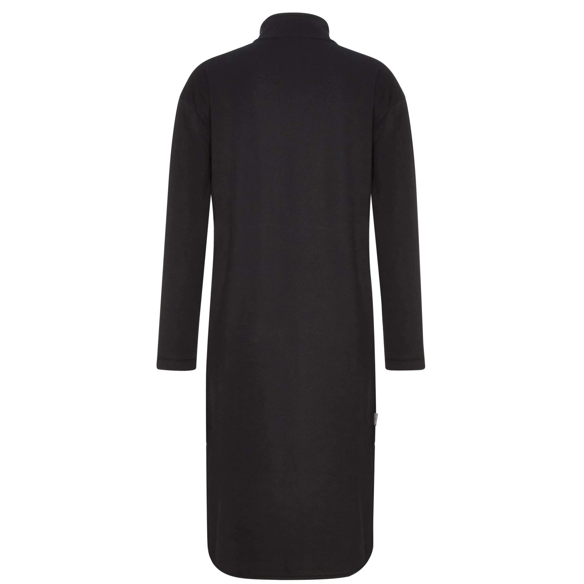 Der kurze Stehkragen hält deinen Hals angenehm warm. Für einen noch lässigeren Look kannst du aber auch einfach den viertellangen Reißverschluss öffnen. An den Seiten befinden sich hübsche Paspeln, die direkt in die abgerundeten Bewegungsschlitze übergehen. Durch den recht langen Schnitt und die langen Ärmel ist das Kleid genau die richtige Wahl für kühle Tage im Frühling, Herbst und Winter.